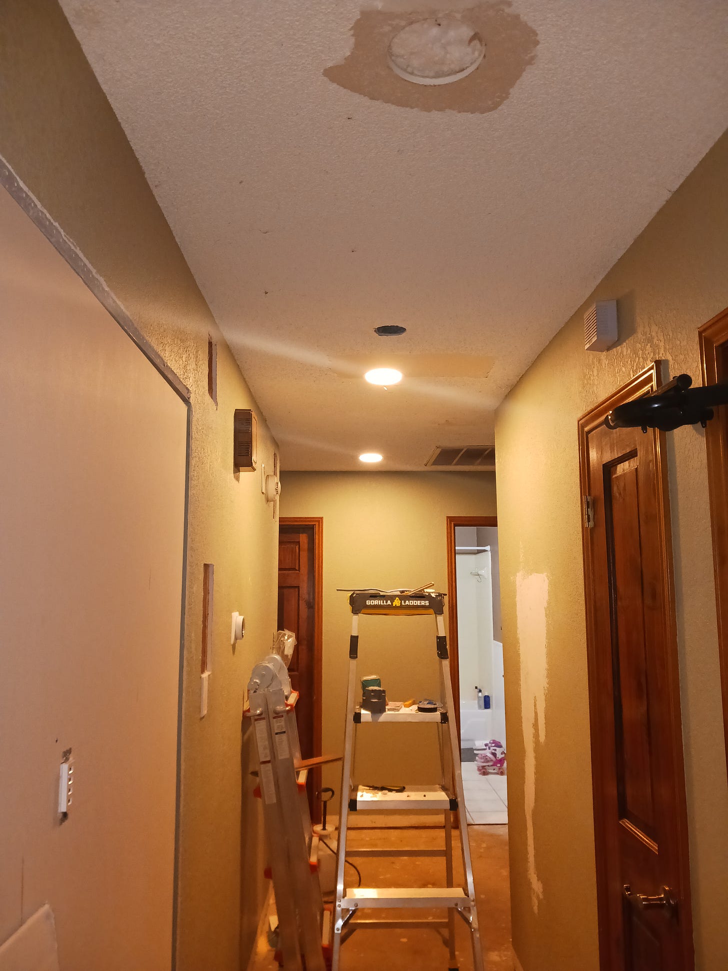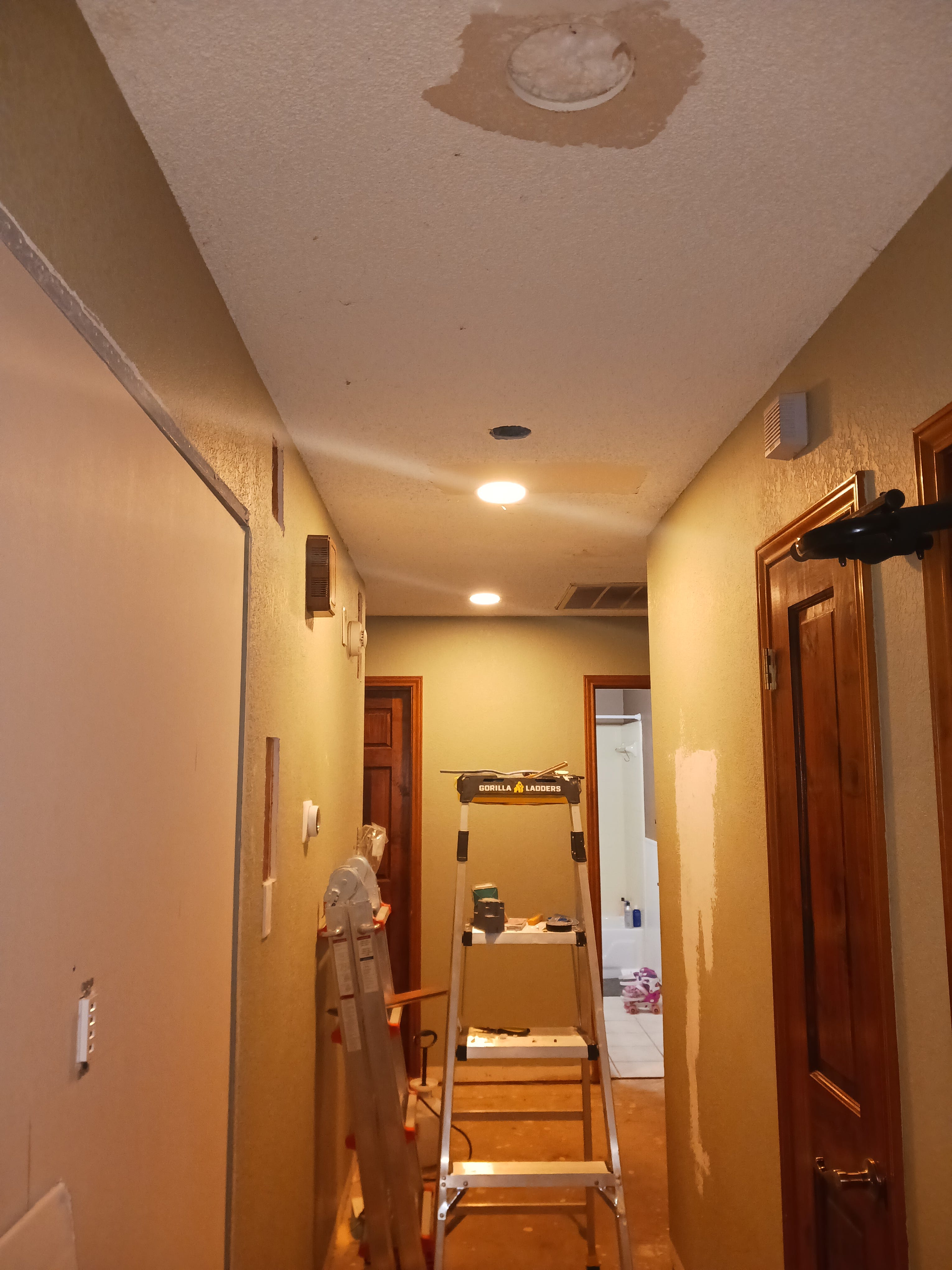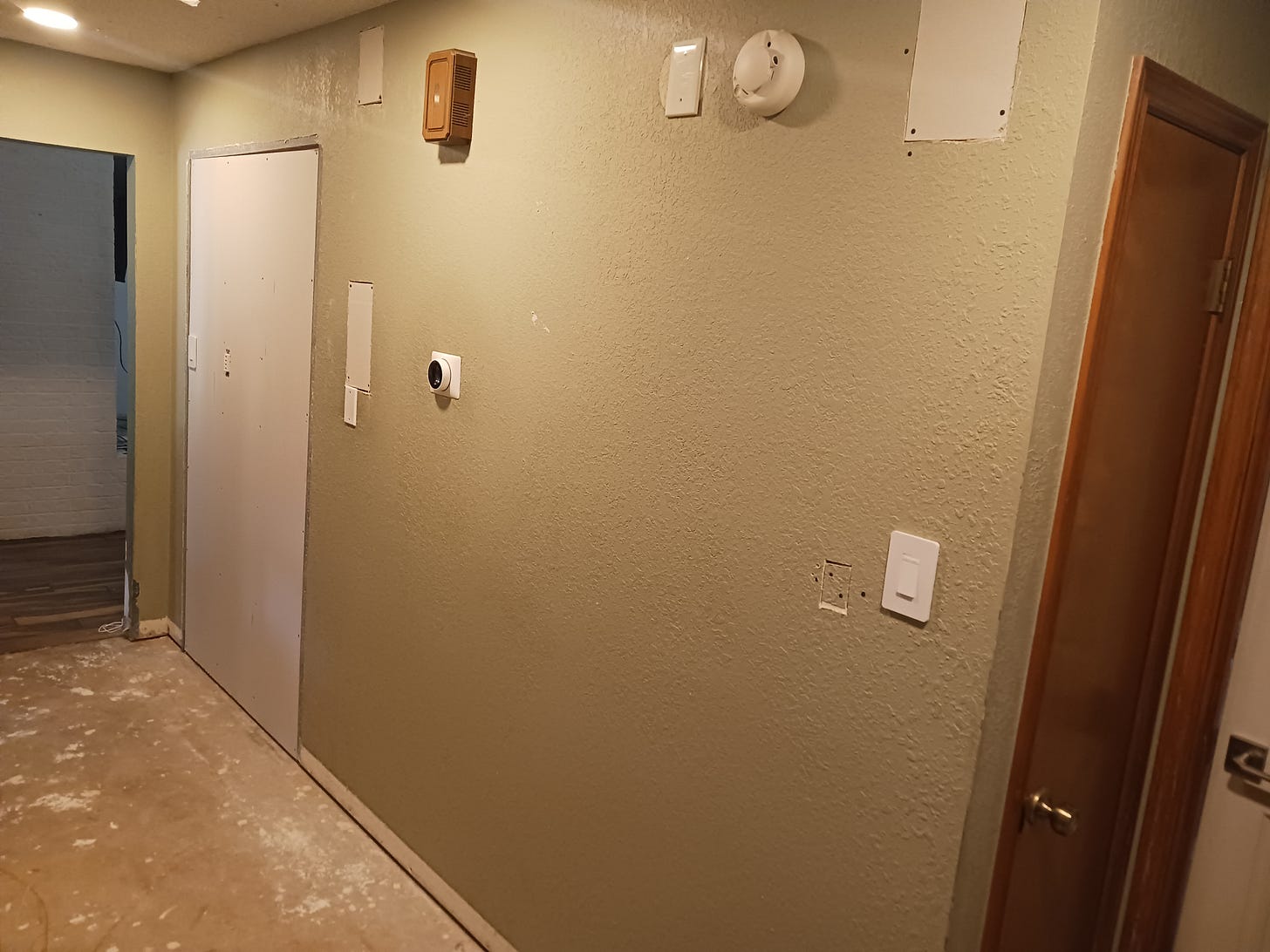 Zdá se, že dokončení zdi v chodbě se blíží. Luk měl konečně všechno potřebné k dispozici a celý víkend se aktivně ňoumal v elektřině a zavírání děr. Máme nová světla, zásuvky, vypínače... a ano! I tu dlouho chybějící stěnu. Další krok by měl obnášet obroušení zdí a stropu, naplácání blátíčkem, aby byla zeď hladká, a malování.