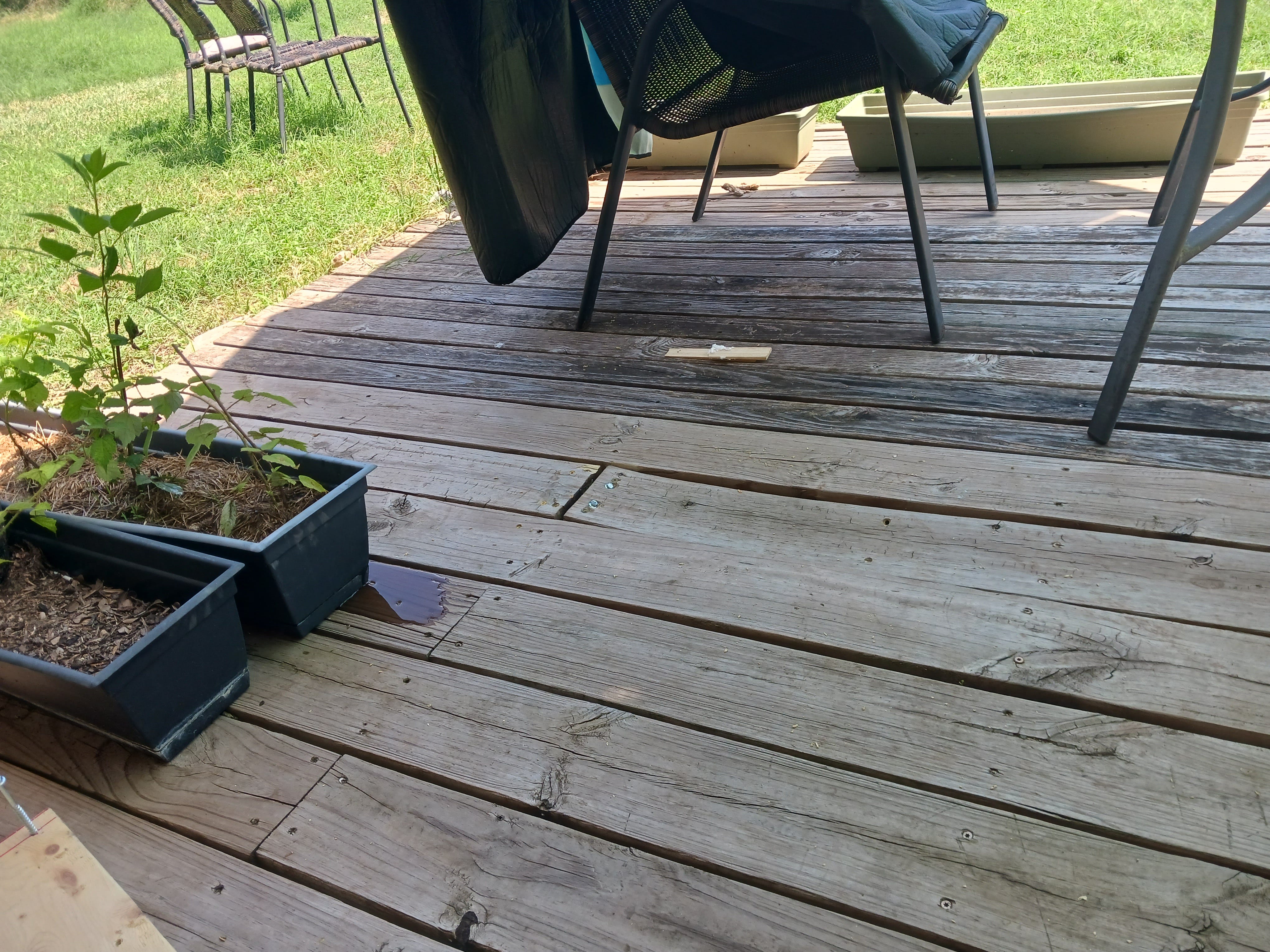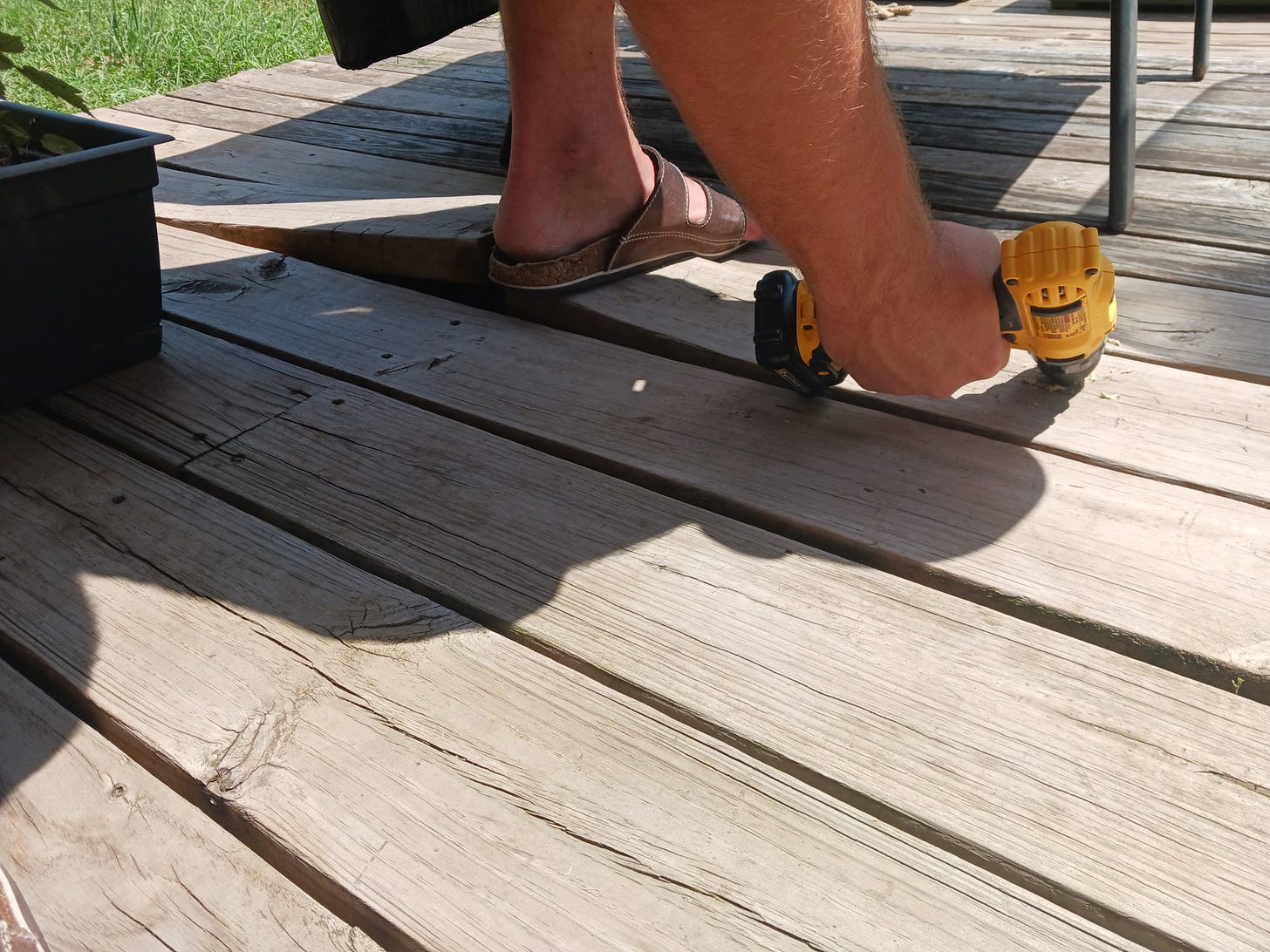 No a samozřejmě se zase něco muselo vyoslit, abychom neusli na vavřínech. Začla se nám boulit a vyskakovat prkna na terase. Jedno se po dlouhém přemlouvání nechalo ukacat k přivrtání, další ze sebe nechalo udělat ementál, ale asertivně zůstalo zvedlé.